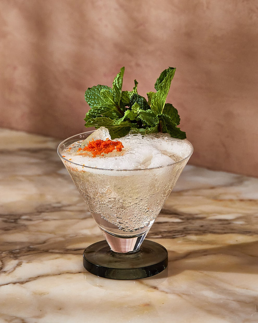 Add all ingredients to shaker. Shake gently with ice. Strain into stem or rocks glass over fresh ice. Top with Betty Buzz Meyer Lemon Club Soda. Garnish with fresh mint sprig and grated orange zest.